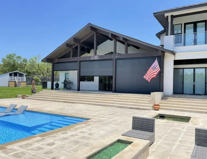 Heavy-Duty Motorized Storm Screens Designed to Protect Outdoor Living Spaces